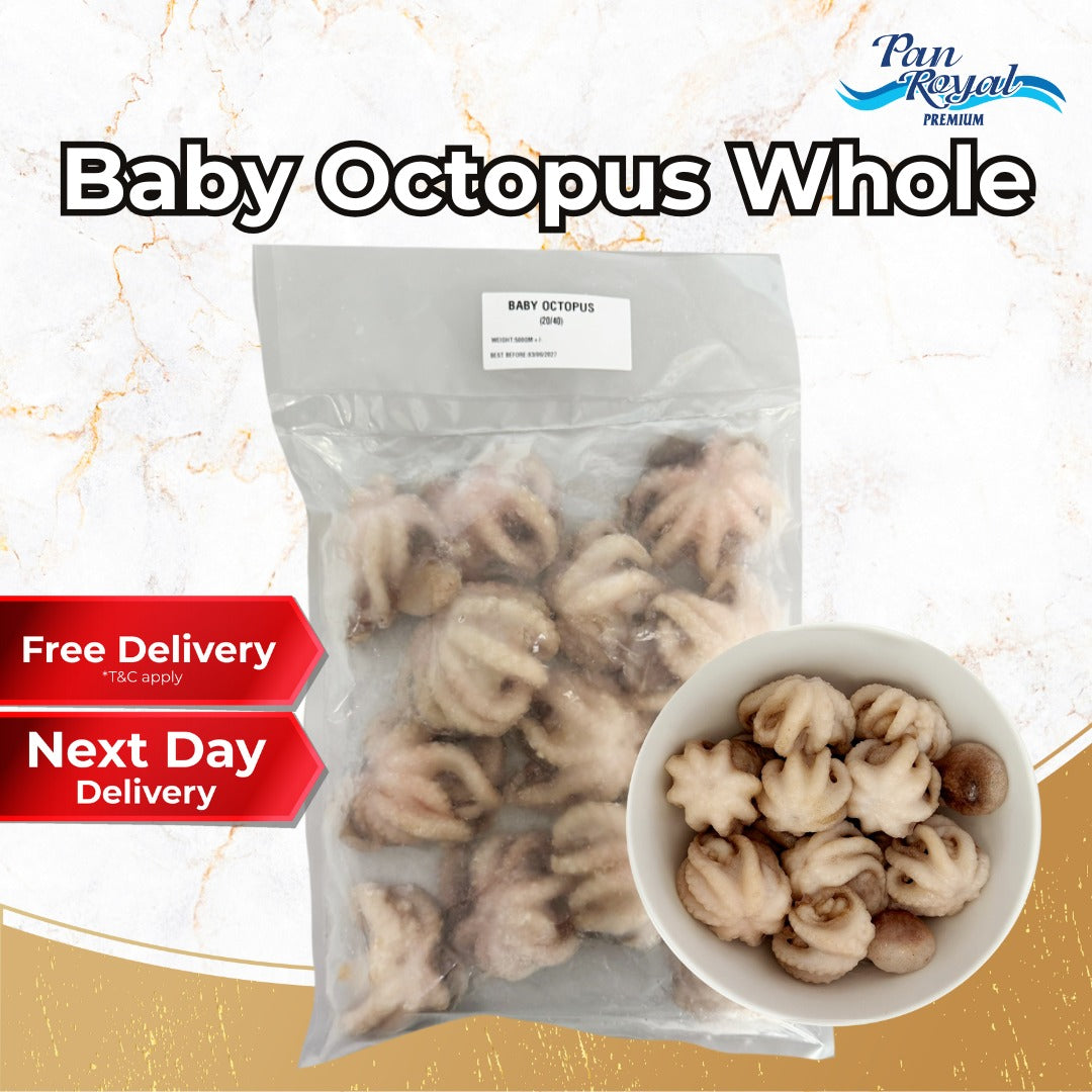 Frozen Baby Octopus Whole 20/40 offers tender, bite-sized seafood perfect for grilling, stir-frying, or adding to hotpot. Sourced from Vietnam and frozen at peak freshness, this 500g pack contains approximately 10 to 15 whole baby octopus—ideal for both home cooks and commercial kitchens seeking premium-quality, versatile seafood.